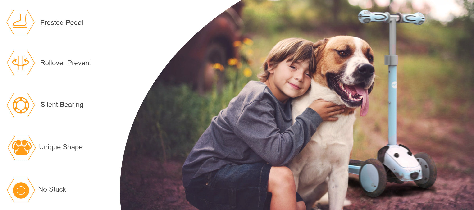 - Award-winning dog-shaped scooter with protective wheels that block 90% of debris, ensuring long-lasting use.
