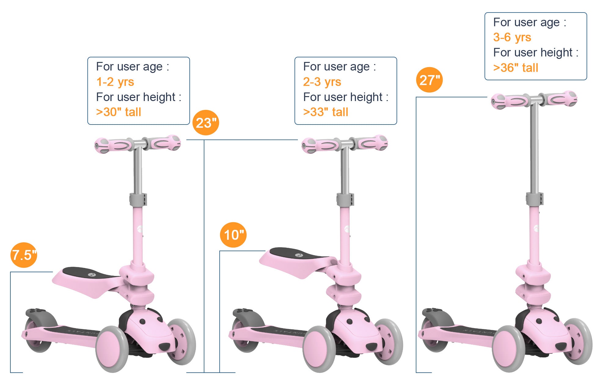 - Adjustable height mini scooter for kids 2-7, grows with your child for long-term use.