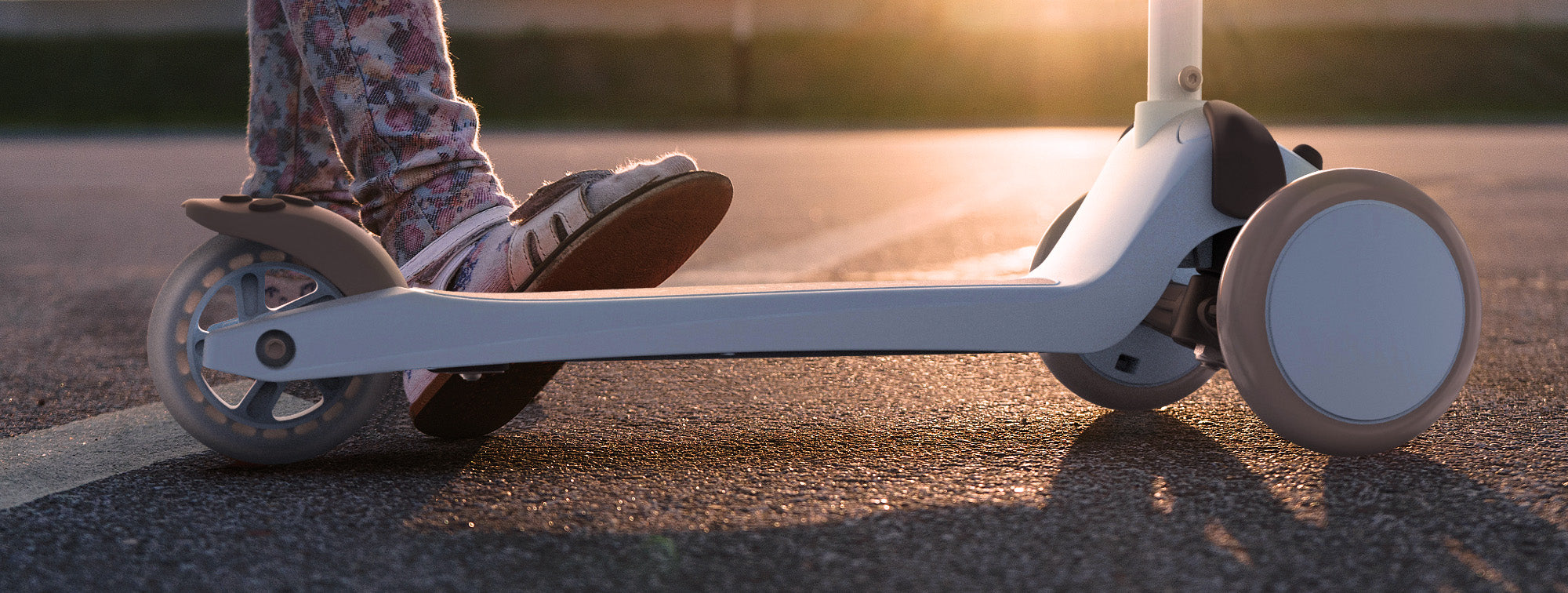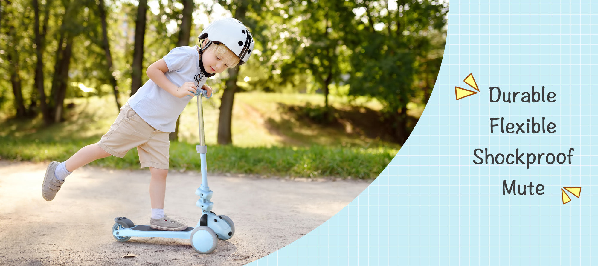 - 3-wheel scooter with silent PU wheels for smooth rides and LED rear wheel lighting for night safety.